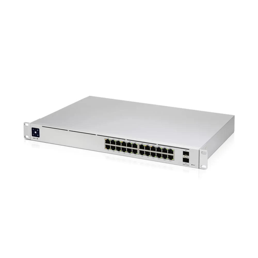 El switch Ubiquiti Pro HD 24 está diseñado para ofrecer conectividad de alto rendimiento en redes empresariales exigentes, permitiendo una gestión eficiente del tráfico de datos. Gracias a sus 24 puertos Gigabit RJ45 y 2 puertos SFP+ de 10G, proporciona gran flexibilidad de conexión. Además, su capacidad de conmutación de 88 Gb/s asegura transferencias rápidas, por lo tanto, optimiza el desempeño de la red.