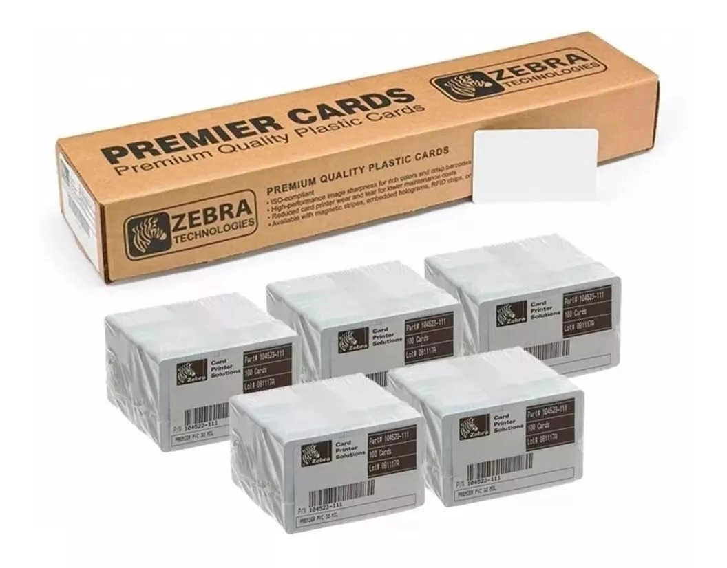 Cada caja contiene 500 tarjetas blancas, cuidadosamente empaquetadas para evitar daños, polvo o contaminación antes del uso. Las tarjetas Zebra PVC Premier están diseñadas para brindar resultados consistentes en cada impresión, ofreciendo una calidad profesional incluso en altos volúmenes de producción.